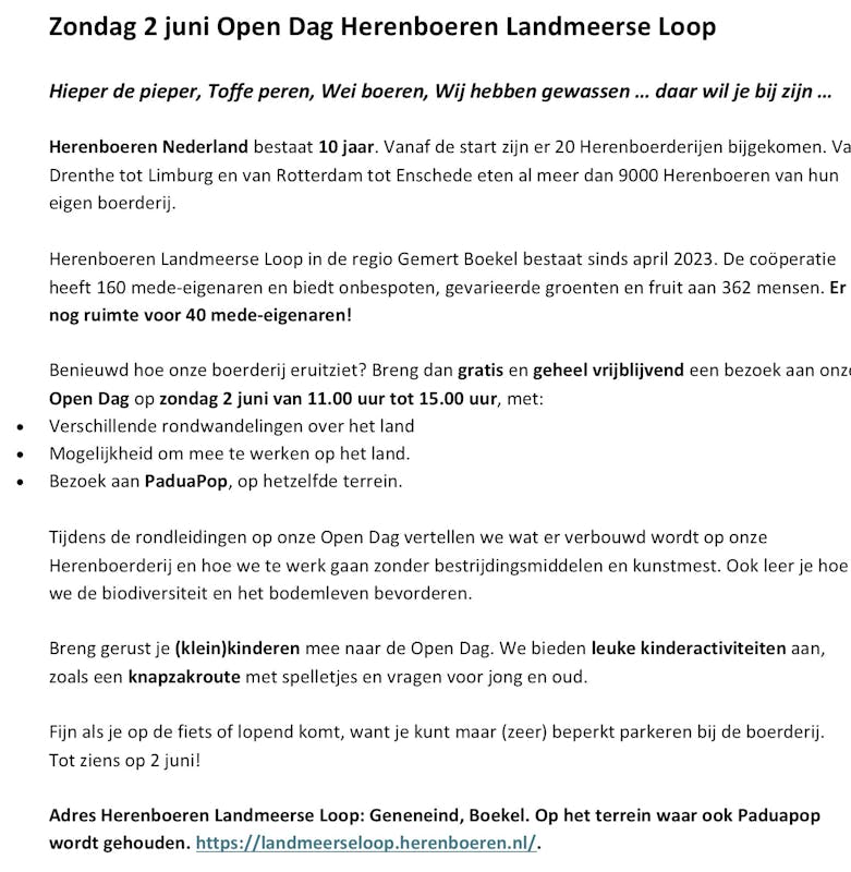 We organiseren deze Open Dag als onderdeel van een reeks Open Dagen, samen met 16 andere Herenboerderijen door het hele land.