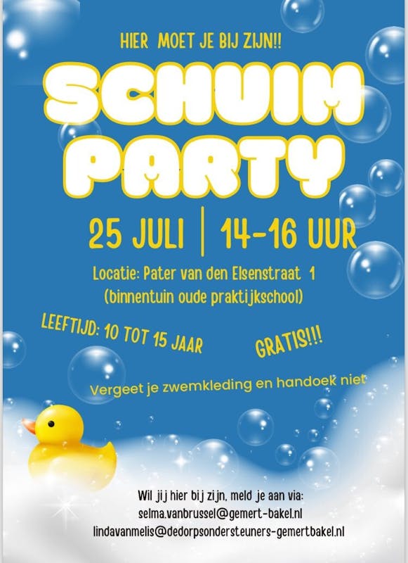 Op 25 juli 2024 organiseert de Dorpsondersteuner Jeugd samen met het Jongerenwerk een TE GEKKE schuimparty voor alle kinderen uit Gemert-Bakel van 10 tot 15 jaar!