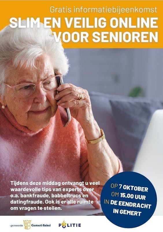 In de week van 7 tot en met 13 oktober vindt de jaarlijkse Week van de Veiligheid plaats. Gemeente Gemert-Bakel organiseert in deze week een gratis informatiebijeenkomst over online veiligheid!