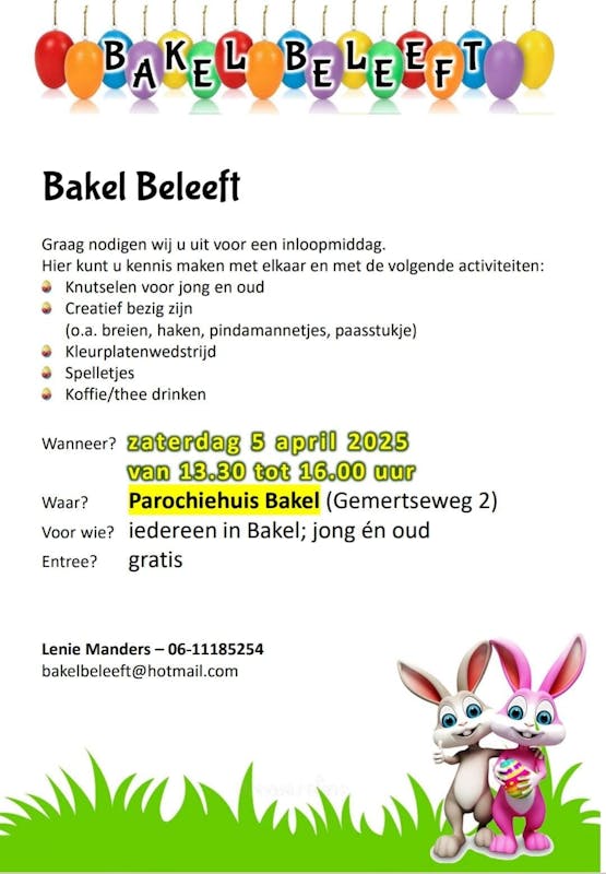 Graag nodigen wij u uit voor een gezellige inloopmiddag voor jong en oud.
