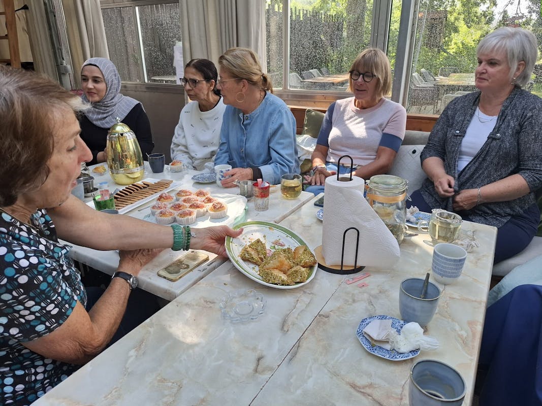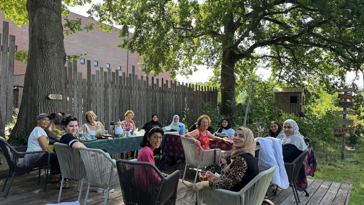 kunnen vrouwen uit verschillende landen en culturen elkaar ontmoeten in het Paviljoen van de Wereldkeuken. (Achter Villa Polder)