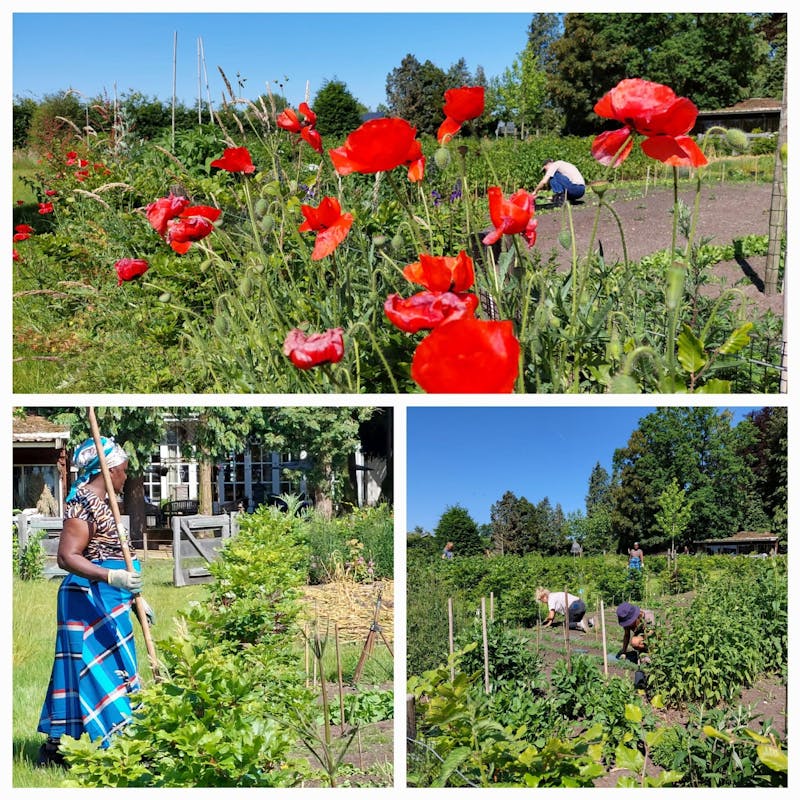 Op zaterdagochtend wordt er door vrouwen en mannen uit verschillende landen en culturen gewerkt in de tuin van Sistermoed achter Villa Polder. De onbespoten groenten, fruit en kruiden worden zoveel mogelijk gebruikt in de keuken van Sistermoed of worden verkocht.