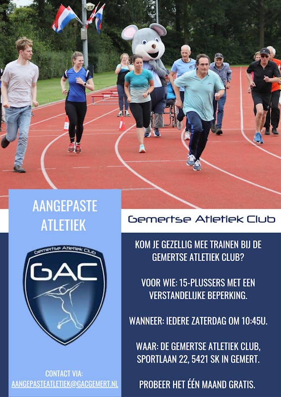 De Gemertse Atletiekclub (GAC) heeft het mooie initiatief genomen om met een groep sporters met een verstandelijke beperking aan de slag te gaan met aangepaste atletiek. Extra leden, maar ook begeleiding is van harte welkom!