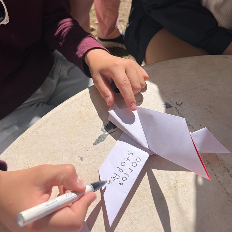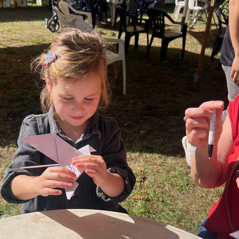 Tijdens Gemert Mert organiseerde de Ambassade voor de Vrede Gemert een bijzondere activiteit voor kinderen: samen vouwden ze vredesduiven van papier. Tussen de vele duiven viel er één extra op. Een jongen schreef er met grote letters op: “OORLOG STOPPEN!” – een eenvoudige, maar krachtige boodschap die de kern van vrede prachtig samenvat.