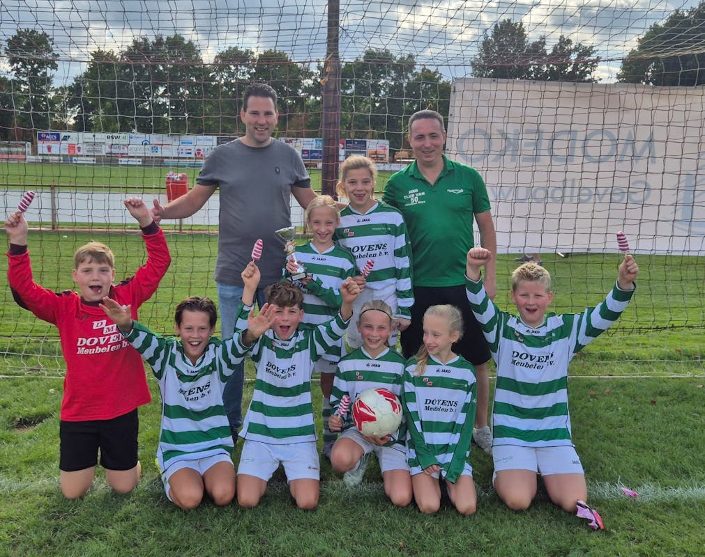 Voor de JO11-teams is het toernooi bij SJVV altijd uitermate geschikt om te wennen aan de nieuwe veldafmetingen en het 8-tegen-8 voetballen. Voor de JO11 werd het een prachtige middag. In de poulefase werden drie Deurnese clubs verslagen en in de finale wonnen de jongens en meiden met 2-0 van MMC Weert JO11.2. Voor een groot deel van het team betekende dit eindelijk de eerste toernooiwinst nadat ze enkele keren heel dichtbij waren geweest.
