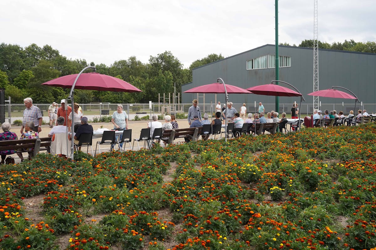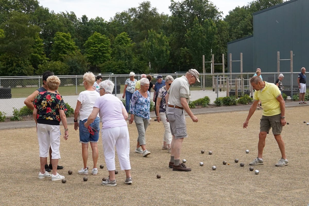 Op zaterdag 15 juli trokken 56 KBO-leden plus enkele introducees richting de petanquebaan. Jeu de boulesbaan vind ik eigenlijk een mooiere naam: spel met de ballen, want dat is het precies. Het weer was goed, de buien trokken langs Bakel (zoals zo vaak) en Du-Tjut ontving ons hartelijk met koffie en gebak. We speelden drie partijen, steeds met andere spelers. De meesten speelden buiten, sommigen binnen in het prachtige clubgebouw van de jeu de boulesclub. Na het startschot was de baan gevuld met ballen en mensen. Er klonken geluiden als ‘littie?’ of ‘wij liggen’ of ‘hullie liggen’. En af en toe hoorde je een ‘tju’. Soms stonden de deelnemers met z’n allen gebogen over de ballen rond het kleine balletje. Er kwam dan meestal een man met een rolmaat die nauwkeurig vaststelde welke bal ‘lag’. En dan werd er weer gegooid om die bal die ‘lag’ daar weg te krijgen. De uren vlogen om, het zonnetje scheen lekker en ondertussen kon je bijkletsen. Winnaar was Wil van Well, KBO lid maar ook lid van Du-Tjut, dus ja, een prof eigenlijk. De kampioen van de amateurs was Nolda Bankers, met als goeie tweede Maria Crul. Op de vierde plaats eindigde Jose Nijssen, ook een prof en dus tweede bij de profs. Op de vijfde plaats Harrie Gloudemans, een amateur. Ze kregen allemaal een mooie prijs. Het was een zeer geslaagde middag!