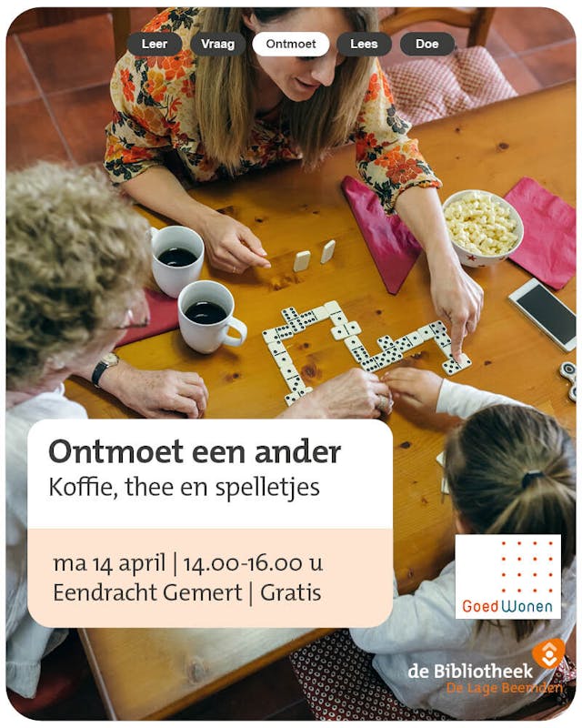 Zin in een gezellige middag met koffie, thee, een praatje en leuke spellen? 🎲☕ Kom dan op maandag 14 april naar de ontmoetingsmiddag in Gemert! Iedereen is welkom. Meer info 👉 Gezellige ontmoetingsmiddag Gemert
