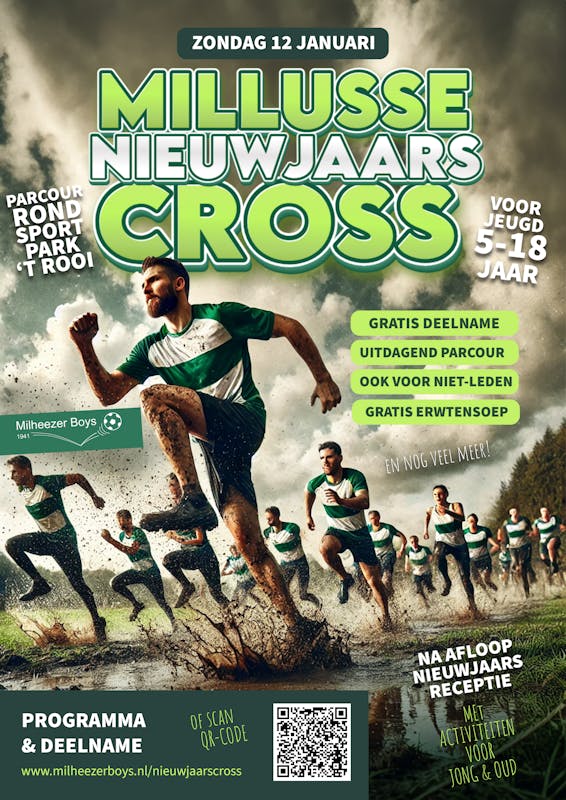 Op zondag 12 januari wordt sportpark ’t Rooi in Milheeze omgetoverd tot het decor van een spectaculaire sportieve uitdaging: de Nieuwjaarscross, georganiseerd door Milheezer Boys. Deze unieke cross is speciaal voor alle jeugd uit Milheeze tot en met 18 jaar, ongeacht of ze lid zijn van de vereniging.