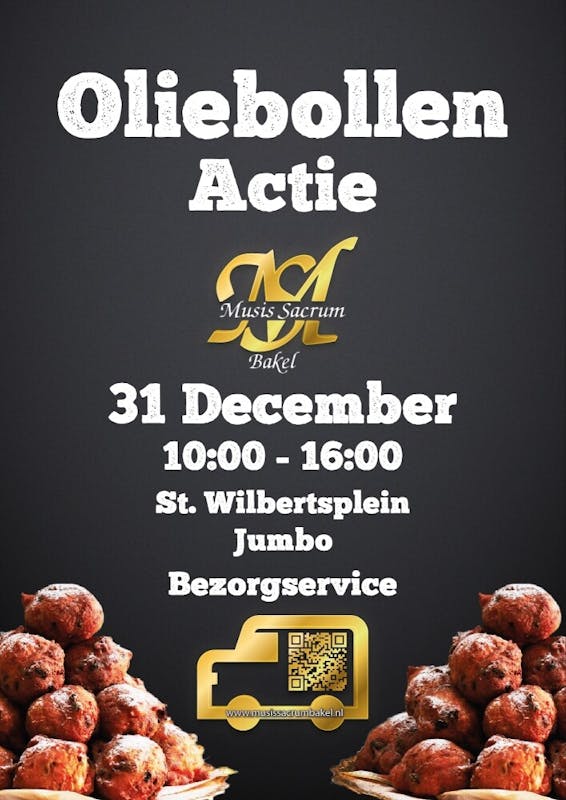 Vanaf circa 10.00 uur zijn de bak- en verkoopwagens geopend en kunt u het jaar weer smakelijk afsluiten met die lekkere oliebollen van Musis Sacrum. Hiermee steunt u ook nog onze vereniging.