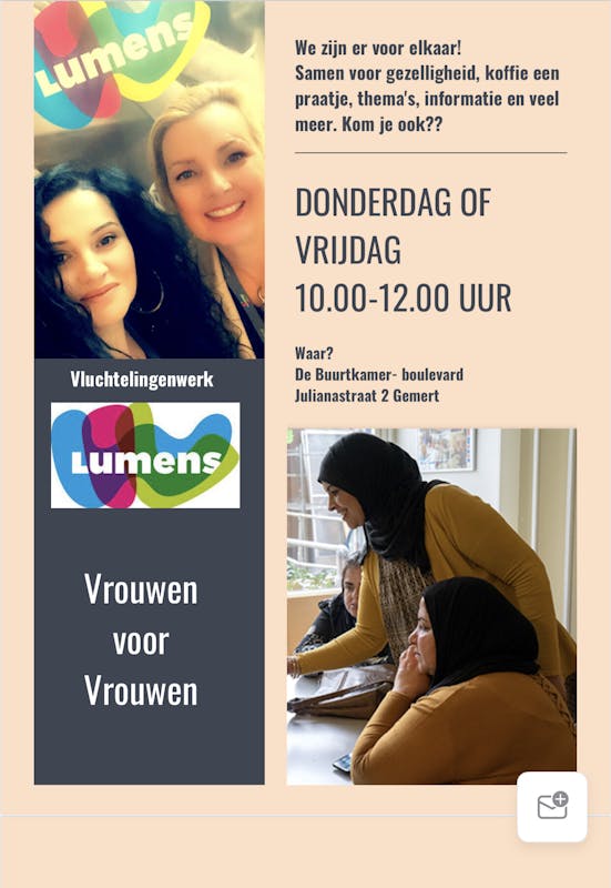 Het is voor vrouwen heel belangrijk om elkaar te kunnen ontmoeten; Vluchtelingenwerk zorgt voor een positieve invloed en geeft veel informatie zodat vrouwen kunnen groeien. Heel belangrijk voor vrouwen die veel thuis zijn en het moeilijk vinden om er op uit te gaan. Kom gezellig langs!