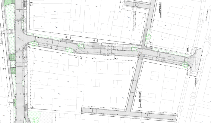 Toelichting ontwerp: in de Prior Davidtsstraat worden de parkeerplekken aangepast aan hoe er nu geparkeerd wordt. De huidige parkeervakken verhuizen naar de overzijde van de rijbaan en worden breder uitgevoerd. Om dit mogelijk te maken verhuisd de huidige rijbaan in het midden van de straat iets naar het zuiden. Alle bewoners die gemeentegrond in gebruik hebben geven deze terug of hebben een overeenkomst gesloten. De eigendomsgrenzen zijn op 24-1-2024 uitgezet middels oranje stippen.